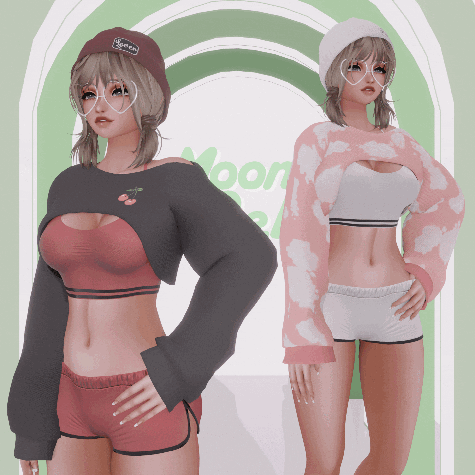 ╰┈➤ Includes 5 Pieces - Sweater, Tank Top, Shorts, Beanie, Heart Glasses